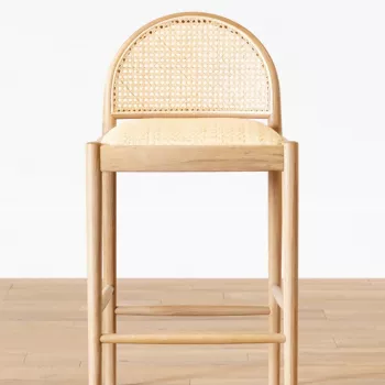 Scandinavian-Style Solid Wood Rattan Bar Stool with Backrest - Modern and Luxurious