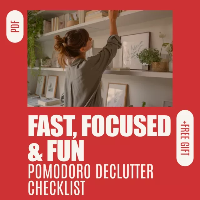 Ready to declutter fast and with purpose? Download The Ultimate Pomodoro Declutter Checklist: Fast, Focused & Fun! now and start making progress today. No more procrastination—just fast, focused decluttering with the Pomodoro method!